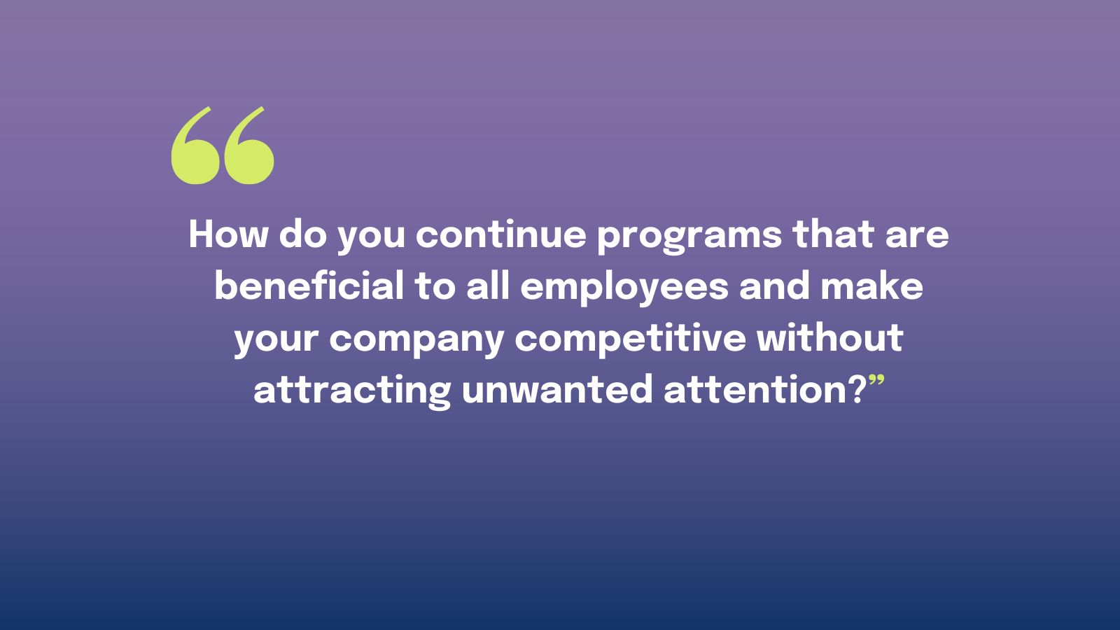 So how do you protect yourself? How do you continue programs that are beneficial to all employees and make your company competitive without attracting unwanted attention?”